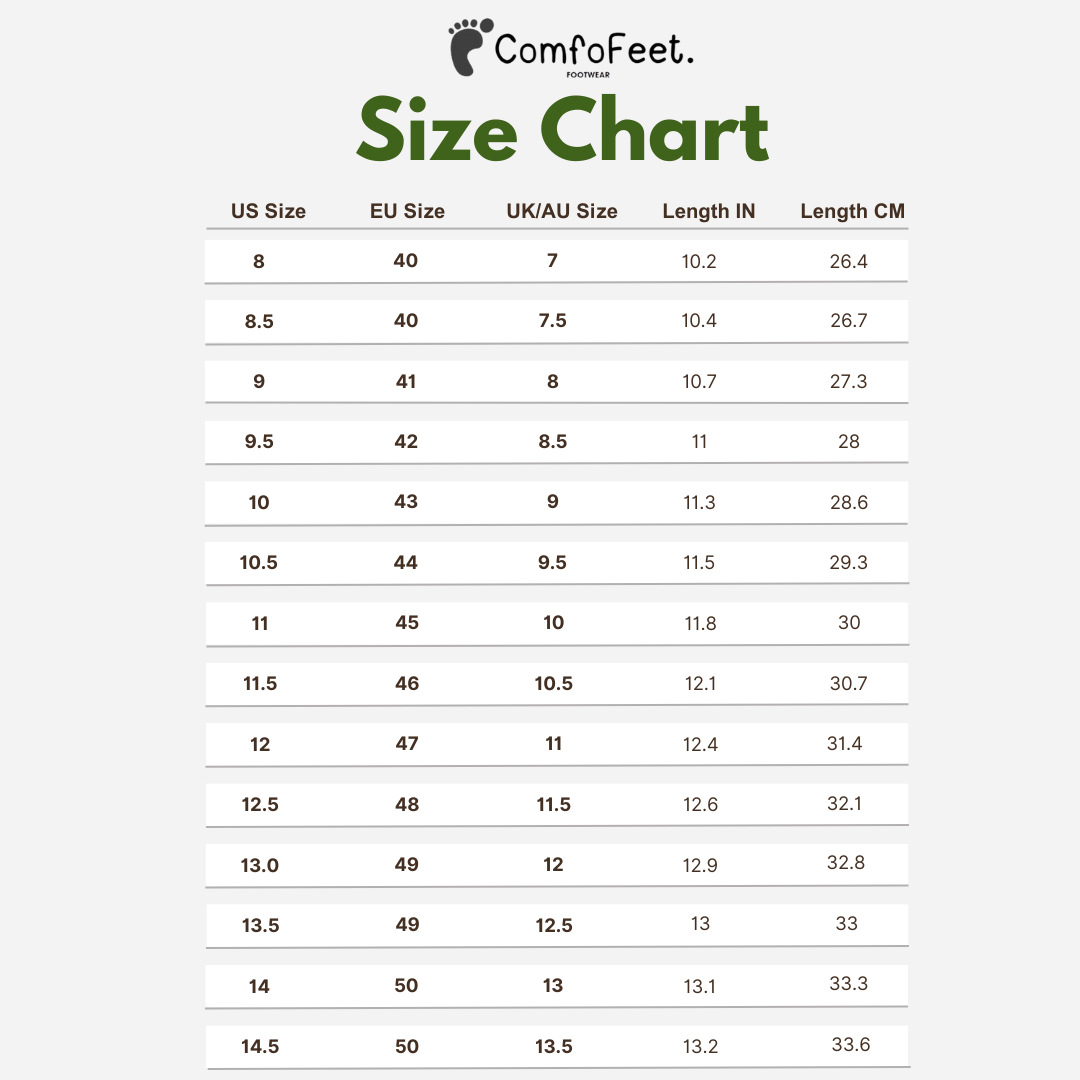 Es importante seleccionar la talla correcta para lograr la máxima comodidad. Recomendamos medir tus pies al final del día, cuando están en su tamaño más grande. Consulta nuestra tabla de tallas y elige la que mejor se adapte a tus medidas. Si estás entre dos tallas, opta por la más grande para mayor comodidad.